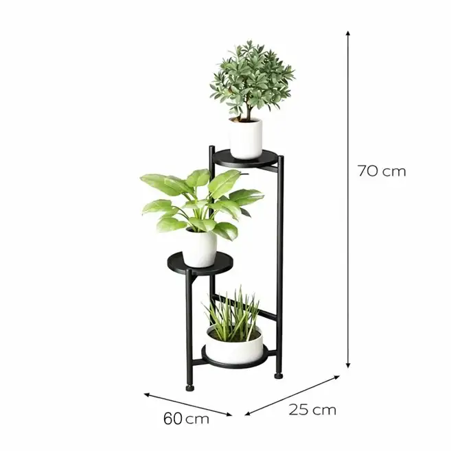 Featuring three spacious tiers with 25 cm spacing, this stand allows your plants, flowers, or decor items to be displayed in a layered, visually appealing arrangement. Each tier supports 10–12 kg, providing a stable platform for medium to large pots while saving floor space.