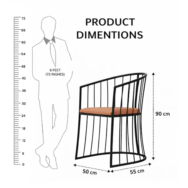 The Linear Arc Patio Garden Chair and Living Room Chair Black is crafted with a strong MS iron frame, offering excellent durability and long-term performance. The matte black powder-coated finish enhances its modern appeal while providing resistance against rust and weather, making it suitable for both indoor and outdoor use.
